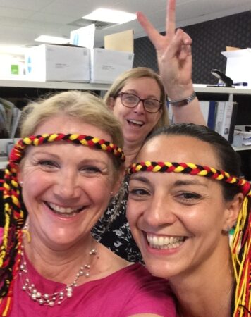 Another wellbeing activity initiated for the nursing academics at my university was a ‘bushwalk’ (a walk in the park), followed by a picnic and a group activity in which we all made ourselves hippy-type headbands in the colours from the flag of the Aboriginal people of Australia. The use of creative arts in this instance, really enriched the experience and lifted the mood of those who attended.