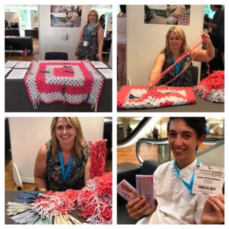 The show and tell was very well received at the conference. I had to adapt my original plan to hand out messages to people as the presentations were assigned tables. Members of the audience were very intrigued as to why I was unravelling a beautiful blanket. It was really interesting to see how different nationalities responded to what I was doing. Notably the local people of Switzerland could not understand why I would unravel such a beautiful blanket and found it destructive. Once I explained the concept in more detail, they began to understand the need to take something apart to build it back up again. The messages attached to the thread acted as an excellent conversation point and helped the audience gain a deeper understanding.