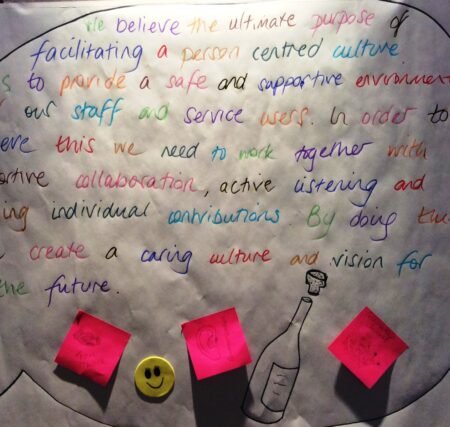 I would say the greatest challenge for participants is helping them to ‘slow down’. There is a culture within health and social care organisations to focus on a project or improvement or ‘fixing things’. In fact the sort of people who become Inspire Improvement Fellows are the sort of people who want to make service improvements, who have ideas about what they’d like to change and an idea of how they’d like to do it; these are all very good things. But for change to be thorough and sustainable, it has to come out of the right place, it has to be based on a solid, workplace culture and foundations. And that is why we start with developing the facilitation skills of the fellows and helping them to develop collaborative ways of working with colleagues and people who use services to find out about their values, about how things are done in the workplace, what care looks like and feels like and what people want it to look and feel like. This slowly, slowly approach can be frustrating, but when ‘building a house it is important to build on solid foundations’, it’s all in the preparation!