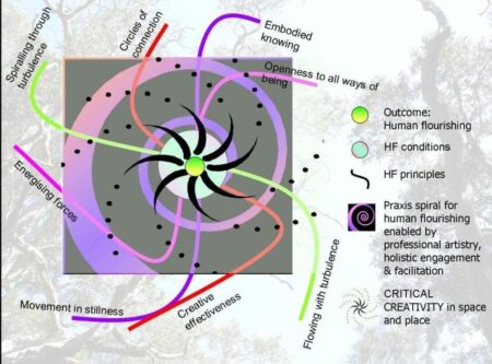 Background:A new methodological framework for human flourishing as the ends and means of transformational action research and practice development has recently been published. Located in the critical creativity paradigmatic synthesis, the framework is one of the outcomes of our shared journey as practice development facilitators and researchers.