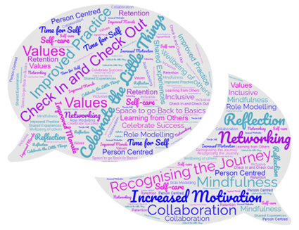 Perspective on making changes has changed. So bogged down by pressure before but made me go back to basics, “why am I doing it, how can I do it including everyone else?” More person-centred approach now. Confidence increased, a lot more in control of how I approach it.