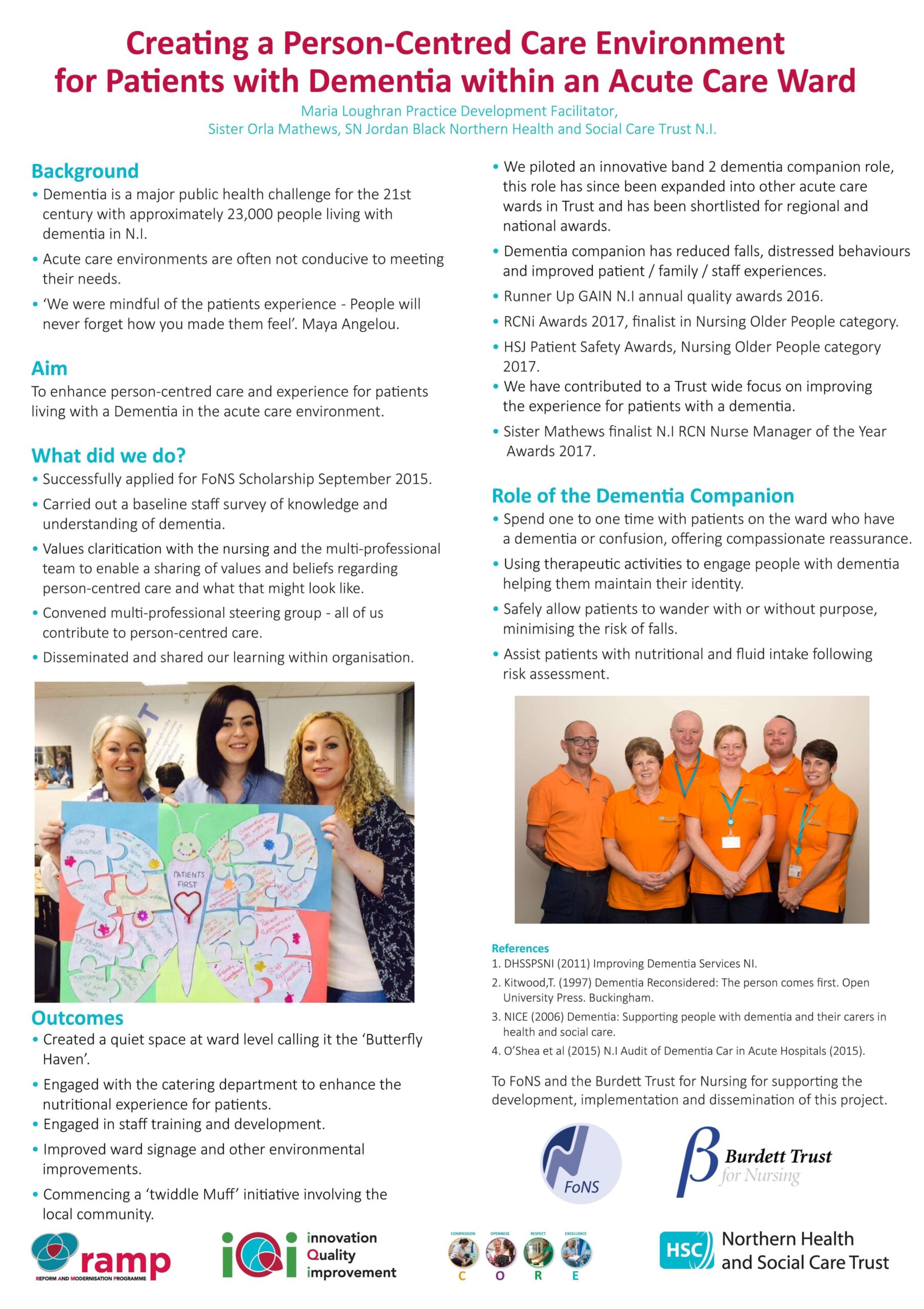 This project was supported by Patients First, a partnership programme with the Burdett Trust for Nursing.